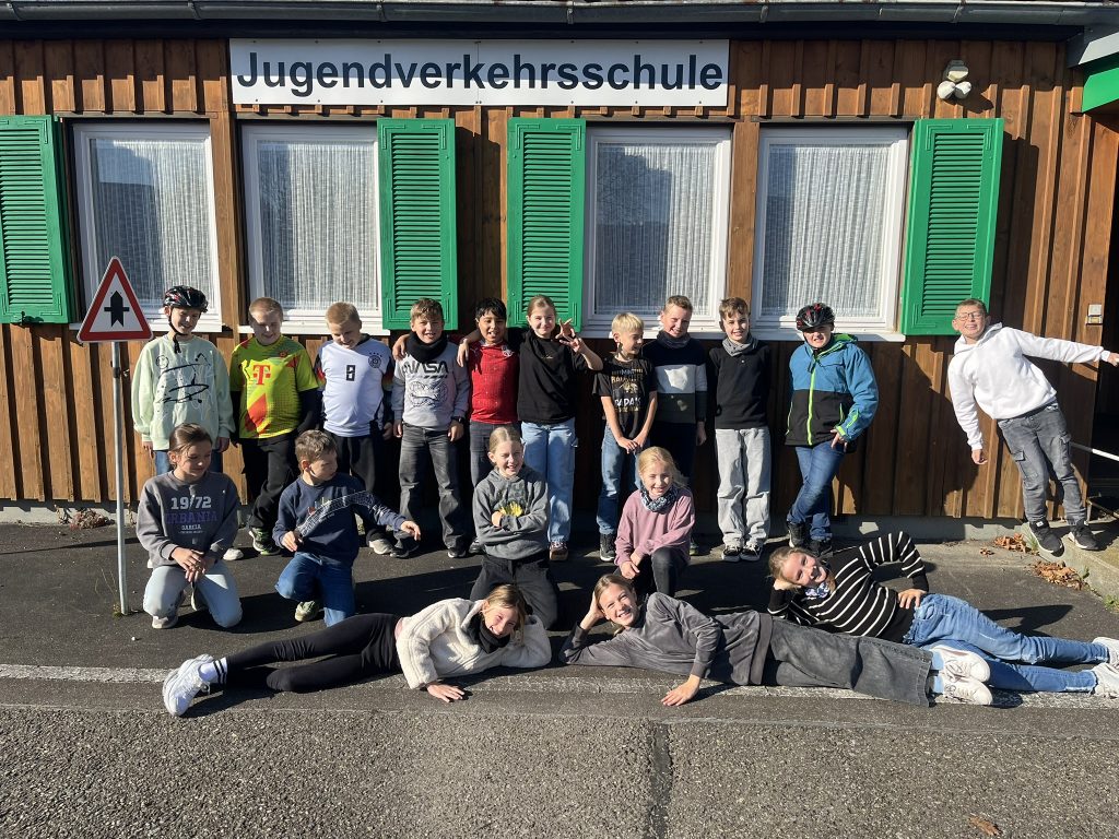 Die Klasse 4 der Digelfeldschule fuhr gleich nach den großen Ferien immer dienstags in die Jugendverkehrsschule nach Münsingen. Vier waren viermal dort. Die Polizisten Herr Schwörer und Herr Heinzelmann warteten vor dem Fahrradschuppen schon auf uns. Jeder durfte sich ein Fahrrad aussuchen. Es gab eine Einweisung und uns wurde erklärt, wie man sich an einer Ampel, in dem Kreisverkehr und an der Baustelle richtig verhält. Immer wenn wir links abbogen, mussten wir acht Punkte beachten. Das war am Anfang richtig schwer. Hinter dem Haus gab es eine Einbahnstraße. Nach der Einbahnstraße kam eine Stoppstelle. An der Baustelle hatte der Gegenverkehr Vorfahrt. Man musste an viele Sachen gleichzeitig denken. Die roten Punkte auf der Straße sagten, dass man sich entscheiden soll, wo man hinfahren will. Wir übten viele Verkehrssituationen. Zu Hause konnten wir an der App auf dem Computer üben. Es gab auch zwei Prüfungen am Schluss, eine auf Papier und eine beim Fahren bei der Jugendverkehrsschule. Es machte dort viel Spaß und war eine coole Zeit. Einmal bekamen wir von Herr Heinzelmann auch ein großes Lob, dass wir bis jetzt die beste Gruppe in dieser Woche waren. Schade, dass es nur vier Mal war.