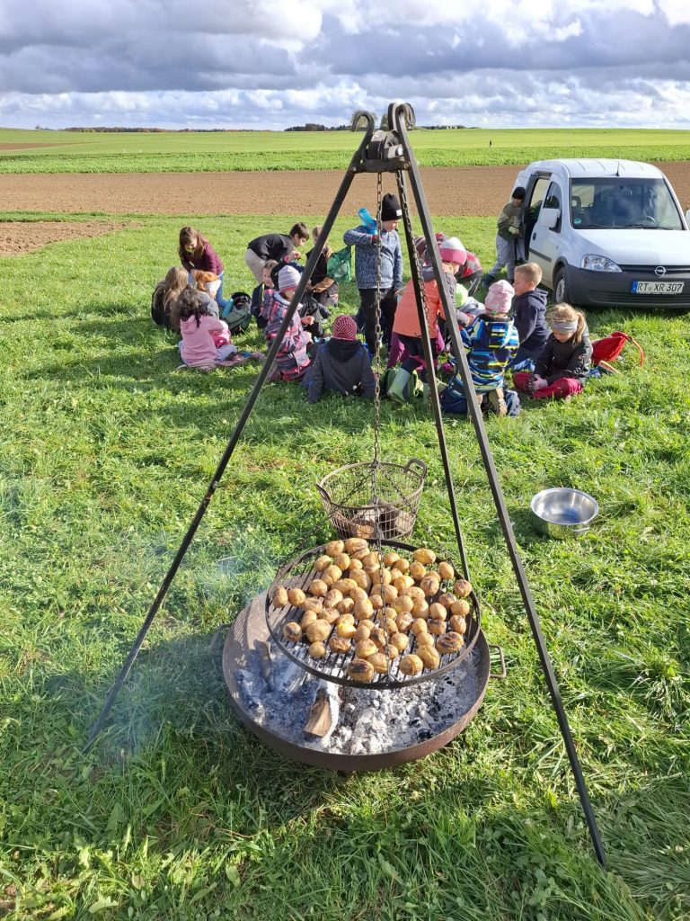 Zum Abschluss grillte Heidrun König für alle leckere Kartoffeln, die sich die Klasse nach der Arbeit gut schmecken ließ. Es war ein schöner und spannender Ausflug für alle. Ein herzliches Dankeschön gilt außerdem den Eltern, die die Gruppe mit ihren Autos nach Ehestetten gefahren haben.