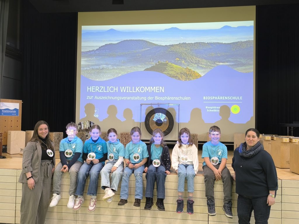 Die Grundschule Hayingen wurde erneut als Biosphärenschule ausgezeichnet. Die feierliche Urkundenverleihung fand in Owen statt, wo wir gemeinsam mit weiteren Schulen diesen besonderen Anlass feiern durften. Kultusministerin Theresa Schopper überreichte die Urkunde persönlich.